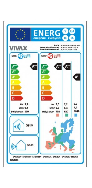 - Sezonas energoefektivitātes klase apkurei A+++, dzesēšanai A+++